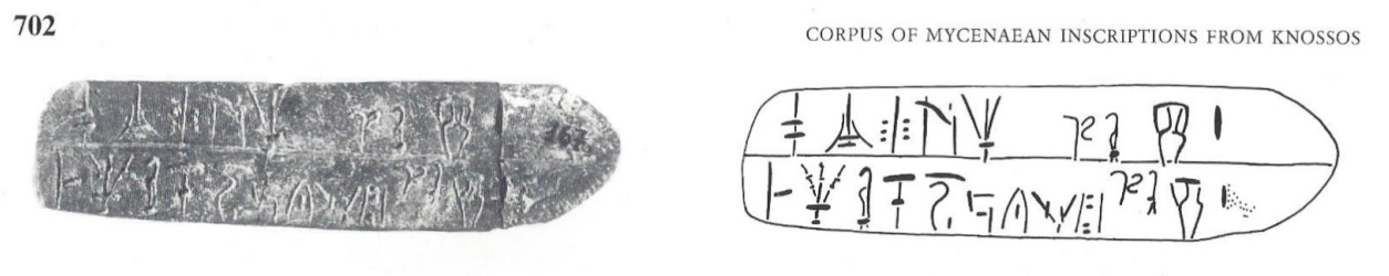 - Chadwick, John et al. 1998. Corpus of Mycenaean Inscriptions from Knossos, Vol. IV (8000-9947). Cambridge University Press.
