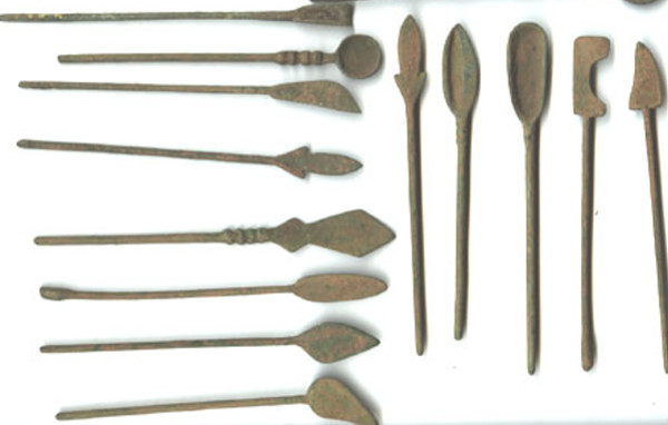 ICS 219, which Lang purchased from a Dhali farmer, is popularly attested as a broken spoon after Masson [1961:245]: “Cuiller à libations en argent” (silver spoon with libation). However, context suggests a broken cautery, which, perhaps, resembles a spoon. A cautery is an instrument, often comprising metal, that ancient surgeons heated and applied to wounds to promote scarification, a practice which was used to stop bleeding and to close amputations [“Cauterization”].